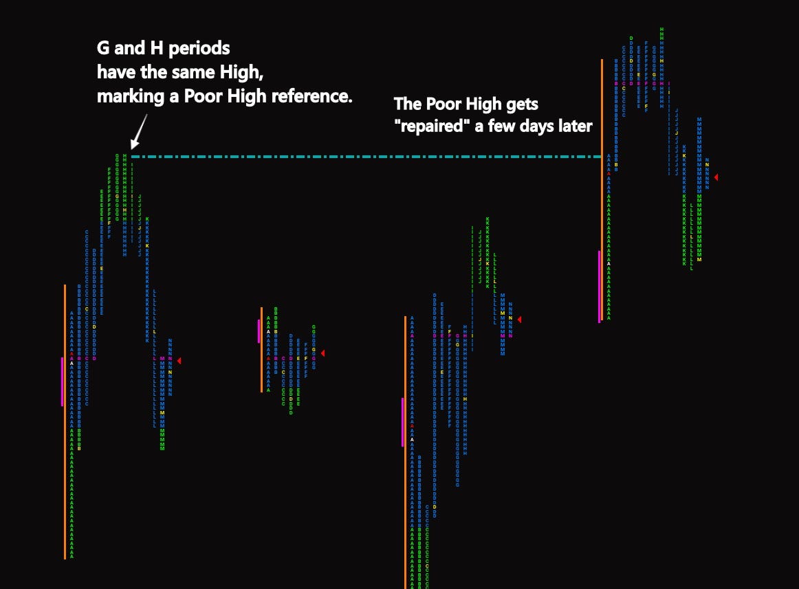 A poor high or poor low forms when a session ends at an extreme without excess.