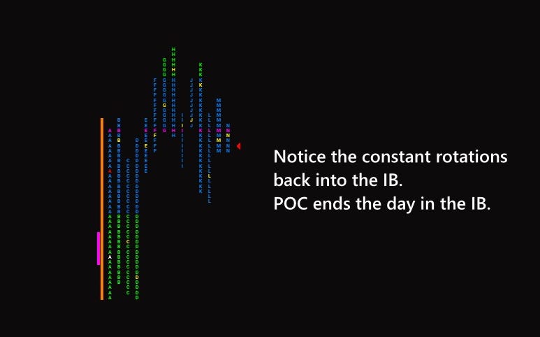If ES opens inside prior value and immediately rotates around prior POC, day timeframe traders are likely dominating.